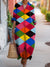 Fashion Geometry Art Print V Neck Sweater Midi Dress