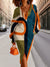Fashionable Stripes Art Print V Neck Sweater Midi Dress