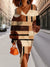 Retro Abstract Textured Geometric Art Print V Neck Sweater Midi Dress