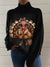 Retro Abstract Thanksgiving Turkey Art Print Knit Turtleneck Pullover Sweater