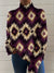 Retro Geometric Pattern Art Print Knit Turtleneck Pullover Sweater