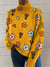 Simple Floral Art Print Knit Turtleneck Pullover Sweater