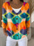 Fashion Color Block Art Print Buttoned Cardigan Sweater