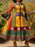 Retro Abstract African Patterns Print Ruffle Sleeve Maxi Dress