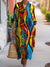 Women's Colorful Abstract Geometric Stripes Art Print Cotton Lapel Button-Down Shirt Dress