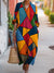 Women's Colorful Geometric Art Prints Cotton Lapel Button-Down Shirt Dress