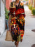 Women's Colorful Jazz Music Abstract Art Print Cotton Lapel Button-Down Shirt Dress