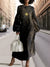 Women's Fashionable Star Print Silhouette Round Neck Heathered Knitted Maxi Dress