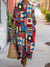 Women's Retro Colorful Abstract Geometric Art Print Cotton Lapel Button-Down Shirt Dress