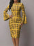 Women's Retro Patterns Prints Flared Sleeves Midi Bodycon Dresses