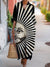 Women's Vintage Abstract Sun Texture Art Print Cotton Lapel Button-Down Shirt Dress