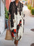 Women's Vintage Abstract Winter Sleigh Art Print Cotton Lapel Button-Down Shirt Dress