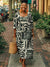 Women's Vintage Ethnic Geometric Art Print Long Sleeve Round Neck Dress