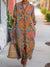 Women's Vintage Flower Art Print Cotton Lapel Button-Down Shirt Dress