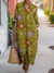 Women's Vintage Flower Art Print Cotton Lapel Button-Down Shirt Dress