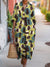 Women's Vintage Geometric Pattern Art Print Cotton Lapel Button-Down Shirt Dress