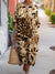Women's Vintage Leopard Art Print Cotton Lapel Button-Down Shirt Dress