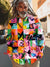 Vintage Abstract Geometric Art Print Casual 100% Cotton Shirt