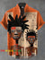 Vintage African Art Hand Drawn Tribal Character Pattern Print Casual 100% Cotton Shirt