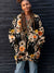 Vintage Black Cat Flower Art Print Buttoned Cardigan Sweater