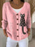 Vintage Cute Black Cat Art Print Buttoned Cardigan Sweater