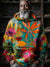 Vintage Flower Art Print Knit Pullover Hooded Sweater