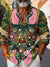 Vintage Flowers Pink Leopard Art Print Casual Long-sleeved Double-breasted Stand-up Collar Shirt