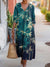Women's Vintage Bamboo Leaf Art Print Pocket Cotton Dress