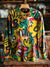 Vintage African Colorful Abstract Geometric Mask Art Print 100% Cotton Long Sleeve Shirt