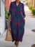 Women's Vintage Flower Art Print Long Sleeves V-neck Dress