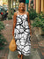 Women's Abstract Line Art Print Sleeveless Suspender Casual Cotton Pocket Dress