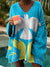 Women's Retro Color Block Splicing Art Trumpeter Abstract Print Casual V Neck T-Shirt