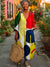 Women's Colorful Abstract Color Block Art Print Long Sleeves V-neck Dress
