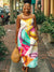 Women's Colorful Abstract Color Block Art Print Sleeveless Suspender Casual Cotton Pocket Dress