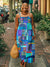 Women's Colorful Abstract Color Block Art Print Sleeveless Suspender Casual Cotton Pocket Dress