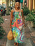 Women's Colorful Abstract Color Block Octopus Art Print Sleeveless Suspender Casual Cotton Pocket Dress