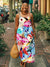 Women's Colorful Abstract Dragonfly Art Print Sleeveless Suspender Casual Cotton Pocket Dress