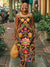 Women's Colorful Abstract Flowers Art Print Sleeveless Suspender Casual Cotton Pocket Dress