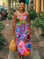 Women's Colorful Abstract Flowers Art Print Sleeveless Suspender Casual Cotton Pocket Dress