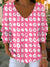 Women's Colorblock Ethnic Pattern Art Print Button Back Casual Knitted Shirt