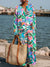 Women's Colorful Abstract Geometric Block Art Print Long Sleeves V-neck Dress