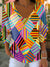 Women's Colorblock Ethnic Pattern Art Print Button Back Casual Knitted Shirt
