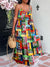Women's Colorful Abstract Geometric Stripes Art Prints Suspender Dress