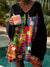 Women's Colorblock Ethnic Pattern Art Print Button Back Casual Knitted Shirt