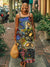 Women's Colorful Abstract Pattern Color Block Art Print Sleeveless Suspender Casual Cotton Pocket Dress