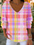 Women's Colorful Abstract Plaid Art Print Casual Pullover Sweater