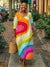 Women's Colorful Abstract Stripe Art Print Long Sleeve Round Neck Dress