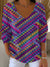 Women's Colorblock Ethnic Pattern Art Print Button Back Casual Knitted Shirt