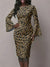 Women's Colorful Abstract Stripes Art Print Flared Sleeves Midi Bodycon Dresses