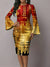 Women's Colorful Abstract Stripes Art Print Flared Sleeves Midi Bodycon Dresses